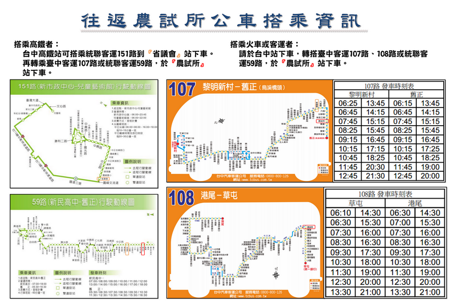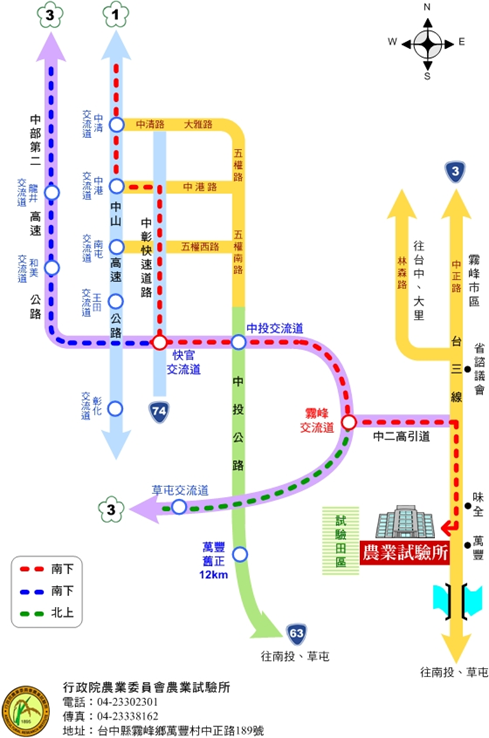 自高鐵臺中站到農試所之計程車車資約400元(參考價格),車程約為20分鐘。 |