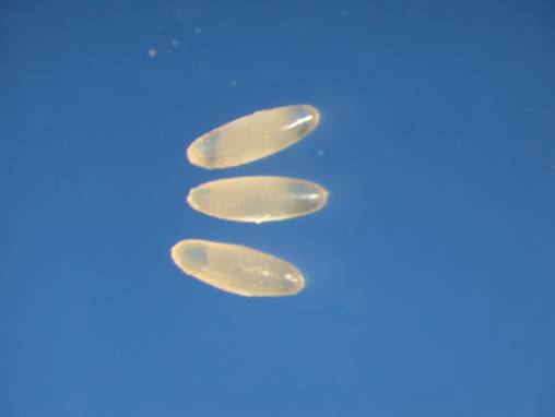 b. 卵:橢圓形,乳白色,一端稍細,長0.7mm。